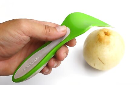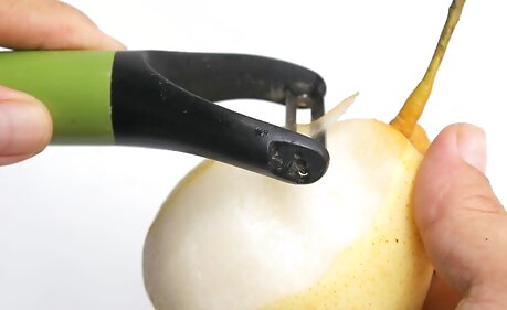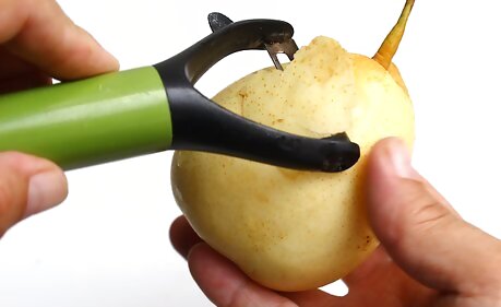 Bite into it just like an apple for a quicker fix. If you're not concerned with fancy presentation, or just want something you can eat while walking to the bus stop, don't worry about cutting the pear. Just rinse and dry the skin, then eat it out-of-hand. An Asian pear makes a great hand fruit—it combines the convenience of an apple with the distinctive sweetness of a pear. No wonder some people call them “apple pears!”