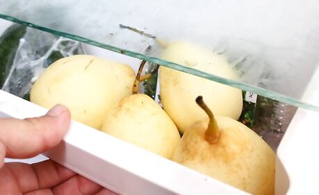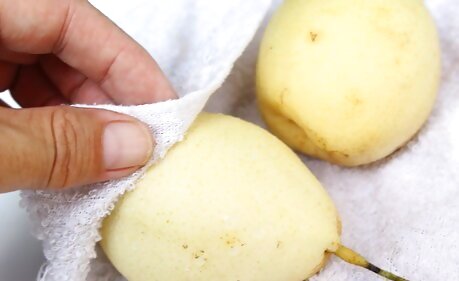 Use either a chilled or room temperature pear. Some people prefer Asian pears chilled, while others think they taste better at room temperature. But there's no wrong choice here—they taste great either way! Asian pears keep much longer in the fridge than on the table—3 months versus 1 week—so it's best to keep them refrigerated. If you like to eat them at room temperature, just let the pear sit on the counter for about an hour before eating it. Rinse the pear and pat it dry with a clean towel before cutting or eating it.