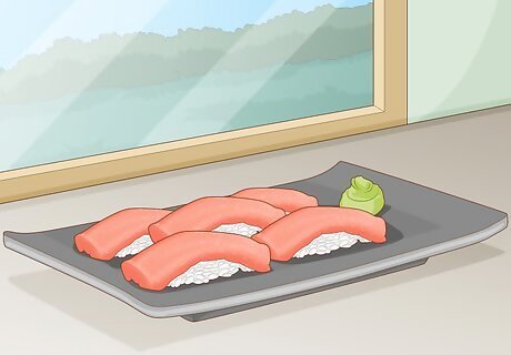 Choose nigiri if you enjoy raw fish. If you already know that you like raw fish, order a few individual pieces of sliced fish. The sushi chef will drape a slice of fish over a piece of pressed sushi rice. This is also a great option if you don't like the flavor of a seaweed wrapper. Remember that you'll usually only get 1 or 2 pieces of nigiri. If you want more sushi, order several types of nigiri or order a roll to share.