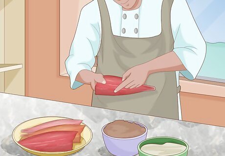 Pick sashimi if you don't want any rice or seaweed in your sushi. Sashimi is one of the purest ways to eat raw fish since there are no additional ingredients. The sushi chef will place a few slices of raw fish on the plate for you to enjoy. It's a good idea to ask the sushi chef what they recommend. You might tell the chef what you enjoy and let them give you a variety of sashimi to try.