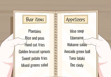 Order drinks or appetizers from the server. Someone will come by your table or seat at the bar and ask if you'd like anything to drink. You could order green tea, beer, sake, or water, for instance, but avoid soft drinks since the sweetness will overpower the sushi. If you'd like appetizers before your sushi, order them from the server instead of the sushi chef. Try miso soup, edamame, or wakame salad to whet your appetite.