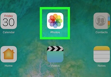 Open the Photos app on your iPhone or iPad. The Photos icon looks like a colored pinwheel on a white background. You can find it on one of your homepages.
