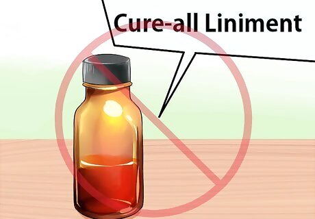 Avoid cure-alls. Most traditional and non-traditional or natural medical treatments are developed with a single purpose in mind. These treatments can be an effective method of treating the illnesses they were designed for, but products that suggest that they can cure a multitude of health issues are often untrue. Very few single products can effectively treat a wide variety of symptoms or illnesses. Remember that claiming a product can do something does not necessarily mean it actually can. False claims are made through marketing materials and on packaging all the time.