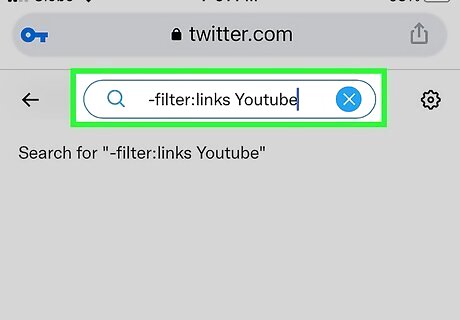 Navigate to the search bar. Type down -filter:links keyword/hashtag (e.g: -filter:links YouTube) and hit Enter.