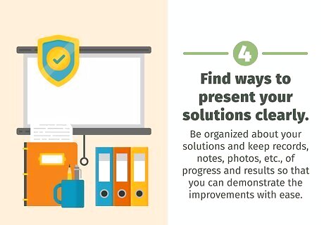 Find ways to present your solutions clearly. Be organized about your solutions and keep records, notes, photos, etc., of progress and results so that you can demonstrate the improvements with ease. It also helps if you can develop something of broader utility, such as a manual, a system, or even signage, that helps colleagues to benefit as well. Be prepared with fast, pointed, and accurate explanations of how your solutions have improved the workplace. Then read How to Get a Promotion!