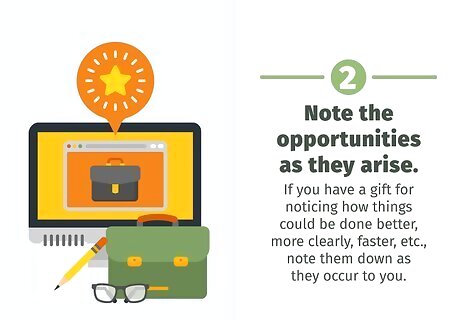 Note the opportunities as they arise. If you have a gift for noticing how things could be done better, more clearly, faster, etc., note them down as they occur to you. This allows you to come back at an appropriate time later and work through them when you can. Learning how to define a problem, then implementing a solution, is a natural part of self development at work and will help you to demonstrate initiative, enthusiasm and an understanding of your organization's needs. Know the mission, principles and values of your organization inside out. It is vital to stay connected to the purpose and intended direction of your organization when aiming to self implement improvements; you are seeking to add value, not reroute what your organization does.