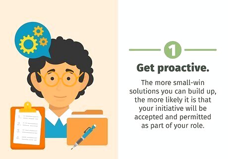 Get proactive. Once you've identified the possible opportunities for new tasks around the workplace, and determined they are worth the effort, it's time to initiate them in small yet useful ways. The more small-win solutions you can build up, the more likely it is that your initiative will be accepted and permitted as part of your role. In many cases there might not be a need to ask for permission provided you aren't neglecting your existing duties and you are making the changes incrementally; it will be a case of developing an evolving interest and gradually advancing ideal solutions, perhaps during your lunch hour or for an hour before work proper starts. The latitude allowed will depend on how receptive, flexible and open your organization is. In other cases, it might be wise to develop a proposal rather than taking over new tasks without a heads-up. This might be essential in a very formal and conservative organization; do some research and groundwork first, present the case along with your proposal and remain enthusiastic about the outcome. Remember that you can still display initiative, even within the constraints of a very conservative organization.