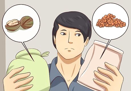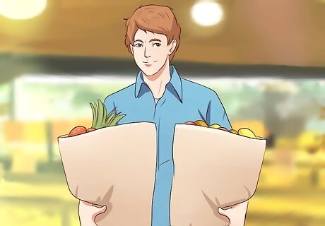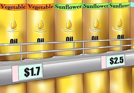 Buy in bulk. Buying in bulk leads to healthier food choices (since many are whole foods), as well as offering you the freedom to choose exactly how much you need rather than conforming to prepackaged goods that can easily be forgotten and wasted. Items to buy in bulk can be rice, flours, cereal, honey, sugars, pasta, lentils, oats (instant, rolled, steel-cut), nuts, oils, dried fruits, spices, coffee, tea, and so much more! Similarly, you can also buy vegetables and fruits in bulk during their peak season and preserve them for later consumption. If you bring your own containers to the store, remember to weigh them before filling them. You'll find scales by the bulk section, or you can take the container up to the counter to have an attendant “tare out” the weight of the container for you.
