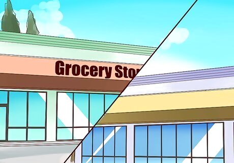 Hit multiple stores. Some stores have better prices on eggs, milk, and cheeses, while others can't be beat on their bulk section. Others might have better prices on toilet paper, while your basic fruit and vegetable stand could have the best prices of them all. Research and ask friends what their money saving experiences in the community have been. Take advantage of each store, but be mindful of how far apart they are. It's not worth it to save a little money on toilet paper when you're spending more on gas.