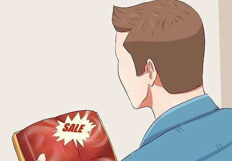 Look for deals on meat and freeze it properly. When meat is on sale, by all means stock up! But make sure to freeze it correctly to avoid it being a wallet-drainer. Grocery store packaging isn't meant for long term freezing. You'll want to re-wrap it one or two times. If it's only going to be frozen for a couple of weeks, a freezer bag will be adequate. Anything longer than that requires tin foil, plastic wrap, and freezer bags. The goal is to make sure no air is touching the meat.