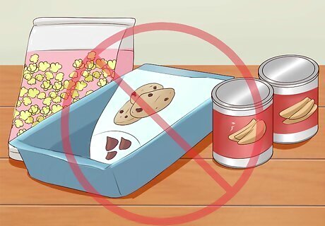 Eat less. Buying less and eating less is an easy way to save money. Cutting back on snacks is a great way to stop overeating and, considering snacks can oftentimes be prepackaged food, is also the most expensive items on a grocery list.