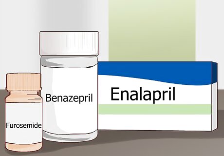 Try medication. There are several medications available to help your older dog manage its heart disease. Your vet will be able to determine which medication your dog would best respond to. Furosemide (available commercially as Lasix) is one of the most common treatment options. This medication causes excess bodily fluid that gets stored in the lungs due to heart failure to excrete as urine. Enalapril and benazepril are also commonly used. These medications allow the heart to pump blood more effectively. Do not administer human medication to your older dog.