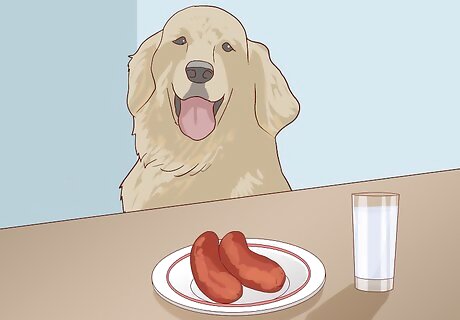 Adopt changes to your feeding habits. Even if your dog is eating modest meals, you might be encouraging obesity through a number of bad habits. For instance, perhaps your dog begs at the table when you eat with your family and gets table scraps. Maybe your older dog receives a number of small treats throughout the day for doing tricks or just being a good dog. The total calorie count on these small snacks can add up quickly, especially if everyone in the house is giving your dog a little extra. Communicate to your family that your dog is elderly and has heart disease, and therefore can’t get snacks and treats at the same level it used to. Instead of treats and snacks, give your dog extra verbal praise and physical affection. Place all treats that you do give in your dog’s bowl. This will reduce the likelihood that it begs for food from you directly.