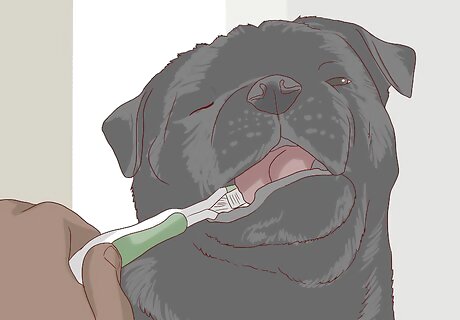 Take care of your dog’s teeth. Heart valves are often damaged by infections which start in the mouth. Buy a doggie toothbrush and toothpaste at your local pet store. Brushing your dog’s teeth is not unlike brushing your own teeth. Simply apply a dab of toothpaste to the brush and scrub gently across the surface of the tooth using circular motions. Do not use human toothpaste. Follow manufacturer directions when using doggie toothpaste.