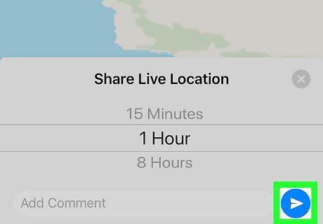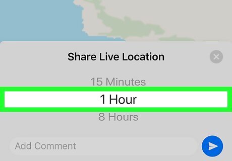 Select how long you want to share your live location. You can share it for 15 Minutes, 1 Hour, or 8 Hours. You can also optionally add comments to your location message here. Just tap the text field at the bottom, and enter your comments.