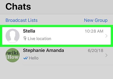 Tap the contact who shared their location. Find the person who shared their location with you, and tap their name to open the chat conversation.