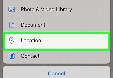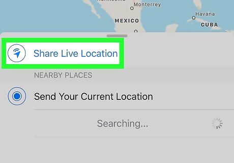 Tap Share Live Location below the map. This option will allow you to share your exact location on a map with your contacts. Your contacts will be able to view your location with live updates. You'll be prompted to specify a period of time to share your live location. Alternatively, you can scroll down and select Send Your Current Location or another location marker. This will only share your current location, and will not provide live updates as you move.
