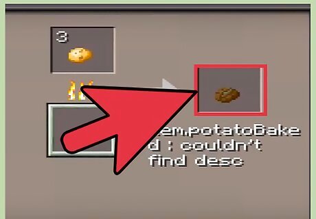 Put them in a furnace for a baked potato. A much more efficient way to consume potatoes is to cook them first. Place the potato in a furnace block (the same way you would smelt metal ores or cook meat) and allow it to cook for a minute or two. When it's done, you will have a new item: a baked potato. This is much more satisfying than a raw potato — it restores three hearts when eaten.