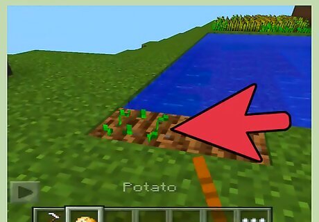 Plant them as crops. Like the other vegetables in Minecraft, potatoes can be planted in the ground and farmed. Unlike wheat, you don't need a special seed to grow potato crops — you plant the raw potato itself. This is the same way that carrots are planted in the game. To convert land for farming, you'll need to till the dirt and irrigate it with a source of water. For a good guide, see our main article on farming in Minecraft.