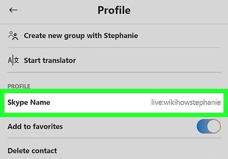 Find the "Skype Name" box under the PROFILE heading. This box displays your contact's username here. On some versions, this box is named Skype instead of Skype Name.