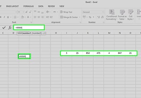 Find the maximum value of the data. To do this, pick a cell where you want the maximum to display (for example, maybe two cells above where you'll put the range). Type {{{1}}} and specify the cells you're trying to find the range for. For example, you might write {{{1}}} or {{{1}}}. Press ↵ Enter