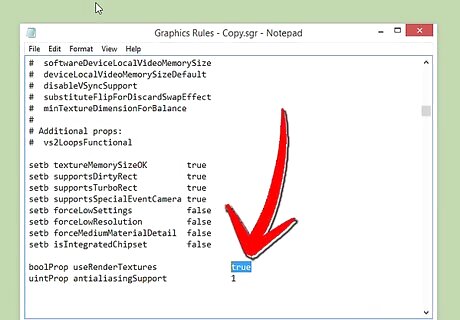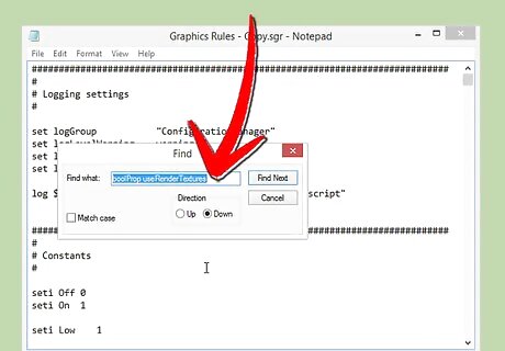 Find the useRenderTextures section. Press Ctrl+F (⌘ Cmd+F on a Mac) and type in boolProp useRenderTextures. This may not pop up in a search; if so, don't worry, as it's not a necessary change.