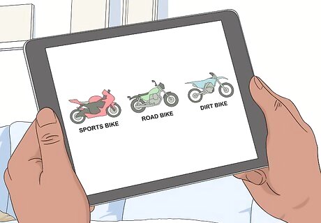 Assess your options. Begin by researching the different types of motorcycles and decide between sport bikes, cruisers, or dirt bikes for your flip. Sport bikes are those bikes that are designed for acceleration and speed. They also look sporty and are designed for sport riding Cruisers are street bikes that provide a spread-eagled position (when the legs of a person are relatively in the same position as an eagle with the wings and legs are well apart) Dirt bikes are designed for rough landscapes and generally have a tall volume