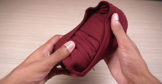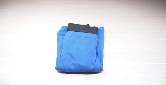 Bundle up socks to save space. Place one sock on top of the other, laid out flat. Fold the band edge of the sock on top underneath itself. Keeping the socks together, roll them up tightly, starting at the very bottom. When you reach the top edge of the sock underneath, flip the outside edge of the cuff around the whole bundle, keeping it in place. Hold onto the inside edge of the cuff, trapping it with your finger against the rolled bundle to make it easier to bundle up the socks.