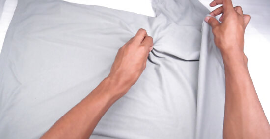 Bring the corners together to fold a flat sheet. Find 2 corners that are on the same edge. Bring them together, matching the edges as you do. Run your hand along the edges until you find the other 2 corners and bring those corners together. Pull the second set of corners over to meet the first, and draw your hand out to the fold you've made. Shake it out, and you've folded the sheet in quarters. Lay the sheet out flat on a table, smoothing out the wrinkles, and then fold it in half lengthwise. Keep folding it in half, always picking the longest side to divide in half. Once the sheet is small enough for your liking, you're done. Always line up the edges for a smooth fold.