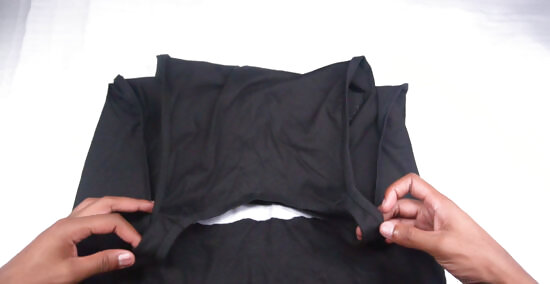 Try a drape fold if you don't have a flat surface. Hold the shirt out in front of you and shake out the wrinkles. Fold the sleeves and sides towards the back of the shirt, allowing the sleeves to meet or cross in the middle of the back. Make sure the sleeves are flat against the shirt, then fold the shirt in half or thirds along a horizontal line. You can also use this fold for sweaters.
