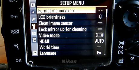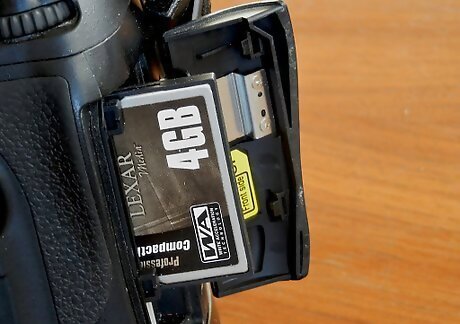Insert the memory card you wish to format into the Nikon D700's body using the memory card slot on its' right side. Make sure the power is off before you insert the card and that you place the card in correctly. The D700 will only accept CF cards, so make sure you have this type available.