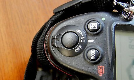 Turn the camera on with the power switch. Only do this after you have inserted the memory card and closed the memory card slot.