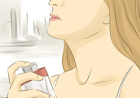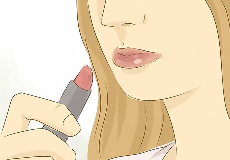 Apply red lipstick if you normally wear makeup. You don't need to wear makeup to get a guy, but red lipstick is a great option if makeup is already a part of your look. Red lipstick is considered a sexy color, so it will make guys think you’re more attractive. Use a classic red for an easy option. Alternatively, match your red to your skin tone. Wear a red with bluish undertones if you have a cool skin tone or a red with orange undertones if you have a warm skin tone. Don’t worry about wearing red lipstick if you hate makeup. You shouldn’t put up a false self: you want him to be attracted to who you are. If you're still in school, make sure you're allowed to wear makeup before you do it.