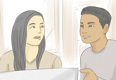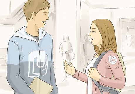 Ask him questions so you can get to know him. People love talking about themselves, so he’ll get a big confidence boost if you show an interest in what he has to say. Get him talking by asking him questions. Then, listen to his response. Nod along as he talks and paraphrase what he said back to him. You might ask, “What are your plans for the summer?” “What did you do last weekend?” or “What kind of music does your favorite band play?” If you're still in school, ask questions about your assignments, like "Which topic did you choose for the research project?" or "Are you going to the school play auditions this year?"