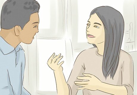 Use open body language to draw his attention. Face your body toward him and keep your arms down at your sides. This shows him you’re approachable and comfortable with him. Avoid positions that close you off, like crossing your arms over your chest or crossing your legs. Try not to turn away from him because this closes you off from him.