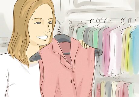 Wear an outfit that makes you feel fabulous. When you wear something that makes you feel great, it boosts your confidence and makes you look more attractive. Choose something that enhances your best features and flatters your shape. This will draw his attention. For instance, you might wear jeans and a form-fitting t-shirt or button-up, a cotton t-shirt and a skirt, or a cute dress. Don’t worry about being trendy. He’s going to pay more attention to your confidence, not your outfit.Tip: Add a pop of red to your outfit to draw all eyes to you! For instance, wear a red shirt, dress, scarf, tie, shoes, or hat.