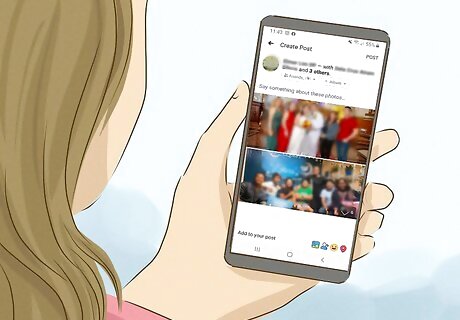 Post about your interests and activities on social media. Include the highlights of your day so that he can see what an awesome catch you are. Post a mix of photos, updates, and events that you’re attending. This will show him that you’re involved in a lot of fun stuff, which may make him interested. For instance, post a pic with your friends, use a photo of you playing a sport, include a photo of your cat, or post a progress photo of a painting you’re working on.Warning: It's important to be careful when you're posting online. Don't post your location, personal information, or contact information on social media. Similarly, avoid sharing information that someone could use to find you or that you don't want made public.