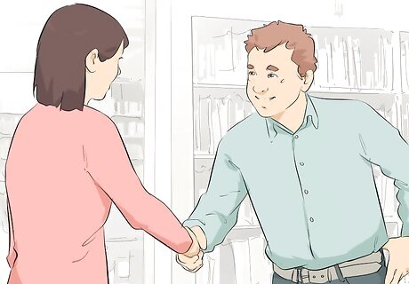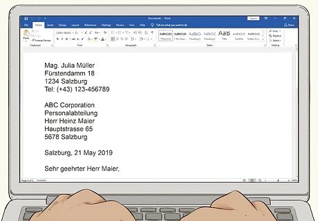 Learn the proper interview etiquette. Germans tend to expect more formality than Americans. Follow these tips to make sure you look professional and avoid offending your potential employers. Germans consider it rude if you do not greet everyone you meet in the workplace. If you pass someone, a friendly greeting is customary. Handshakes are the common greeting in the business world. Look the person in the eye and give a short, firm handshake when you meet them. Germans traditionally introduce themselves by giving their first and last names. Germans value personal space. Keeping yourself at a comfortable arm’s length from everyone is considered polite and respectful. Formal business clothing is expected in most interviews.