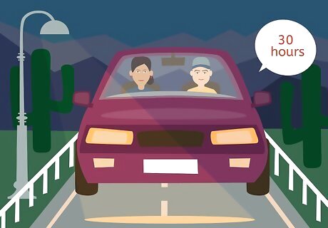 Complete at least 30 hours of driving practice. With your learner license, you must have a licensed adult over age 21 in the car with you, and you must keep a log of the hours you drive. At least 10 hours must be night driving.