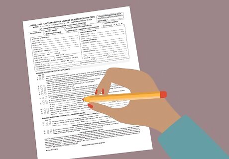 Complete an application form. The application form is available online so you can download and print it, or you can pick one up at any driver license office.