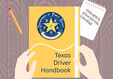 Get and study the Texas Driver’s Handbook. This is available online or in any driver license office. If you are in a driver's education course, you may get a copy of the Handbook as part of your course materials. Study the Handbook carefully. This contains the information that will be on the written test for your license.