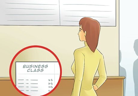 Look the part. Dress like a business executive and at the very least, business casual. This means no jeans, athletic shoes or wear or other very casual attire. Looking like a first class passenger helps. Airlines are more willing to upgrade passengers who look as though they will fit in with those who willingly paid the extra money. You may also be able to get a seat in business class. Be aware that most upgrades are not based on looks, but on status. If you don't travel frequently but look like an MBA all-star, and the choice is between you and a sloppy-looking but extremely well-traveled NBA all-star, your Gucci's just won't count.