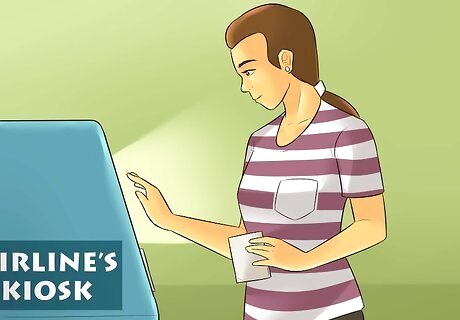 Check in at the airport kiosk. Arrive at the airport a couple hours early, and check in using the airline's kiosk. You will be able to modify your seat assignment as available, and if there are any first-class seats available, you may be able to purchase an upgrade at a significantly reduced cost.