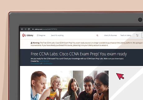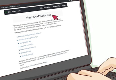 Enroll in a study school to prepare for the exam. Many online schools have training programs to prepare you for the CCNA exam. Online classes are useful since they include videos and other resources tailored specifically to the CCNA test. These classes are led by professionals who understand the materials and want to help you succeed. While the total test preparation time varies per person, online classes are the most streamlined and efficient way to prepare. Use free online study resources to get started.