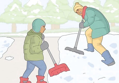Offer to do outdoor chores. Try to make your household chores more physical by offering to do labor intensive, outdoor chores like raking leaves, shovelling snow, or tidying up the yard. This way, you can burn calories and follow through on your responsibilities at home. You can also make a game out of your chores by challenging yourself to get them all done within a certain time period or as a race against a parent or a sibling. This will encourage you to move fast and burn some calories while you do your chores.