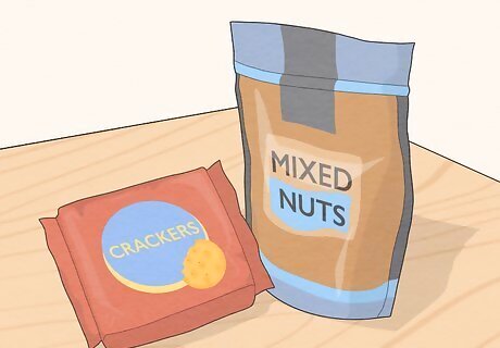 Keep healthy snacks in your backpack or your locker. To satisfy any food cravings you may have at the midpoint of the day or after school on your way home, you should pack healthy snacks so they are easy to access. Keep a few bags of nuts or dried fruit in your locker and pack tuna and crackers in your backpack. This way, you will not be stuck getting something from the vending machine when you are looking for a snack. Only pack non-perishable items in your locker and your backpack, as you do not want to reach for your snack to find that it has gone bad.