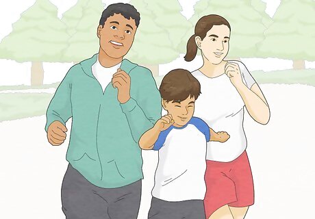 Do physical activity with your family. Enlist the support of your family by rallying everyone to exercise together. This could mean going for a family walk before dinner or on the weekends. Maybe you can help your parents plan a biking trip or a kayaking trip. Get your family to sign up together for a charity run or walk and train together. This will allow you to feel motivated to get fit and supported by your family to do so.