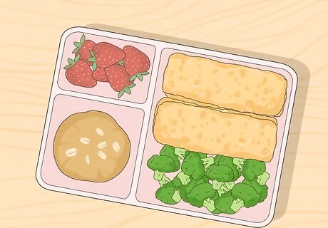 Bring your own lunch to school. To maintain a healthy diet at school, try to plan out your meals at home so you have leftovers to bring to school as lunch. Pack your lunch the night before school or help your parents do this. Make sure your lunch will be filling but also nutritious, with enough fruits, vegetables, and healthy sources of protein, as well as dairy options. Sometimes having a cool lunch box can be a good motivator to bringing lunch to school everyday. If you do not already have a lunch box, you may want to ask your parents if you can go shopping for one together. You can then bring your lunch to school with you with pride.