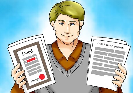 Gather ownership and legal documents. As part of your grant or loan application package, you typically must provide documents showing that you own any land, livestock, or equipment that you intend to use in your farming business. For example, if you own the land on which you want to operate your farm, you'll need copies of the deed to include with your applications. That land is an asset for your farm. If you're leasing farmland, you'll probably need copies of your leases as well. The same goes for any leases of major farm equipment.