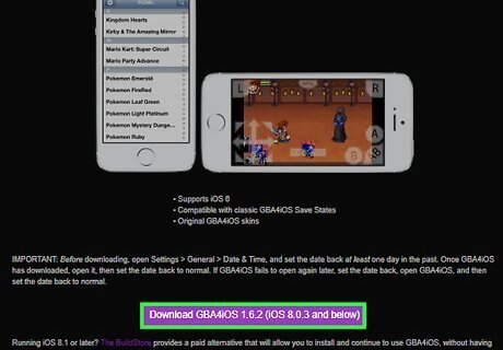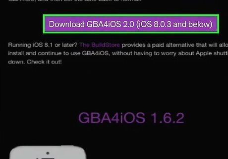 Tap the download link. If you are using iOS 7 or 8, tap the "Download GBA4iOS 2.0.X" button. If you are using iOS 6, tap the "Download GBA4iOS 1.6.2" button.